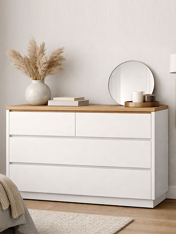 La Cómoda Modelo Catarroja destaca por su diseño elegante y funcional, siendo la opción ideal para quienes buscan un mueble de almacenaje práctico con una estética limpia y contemporánea. Sus líneas rectas y proporciones equilibradas permiten integrarla fácilmente en dormitorios de estilo moderno, nórdico o clásico contemporáneo, aportando orden y armonía al espacio.